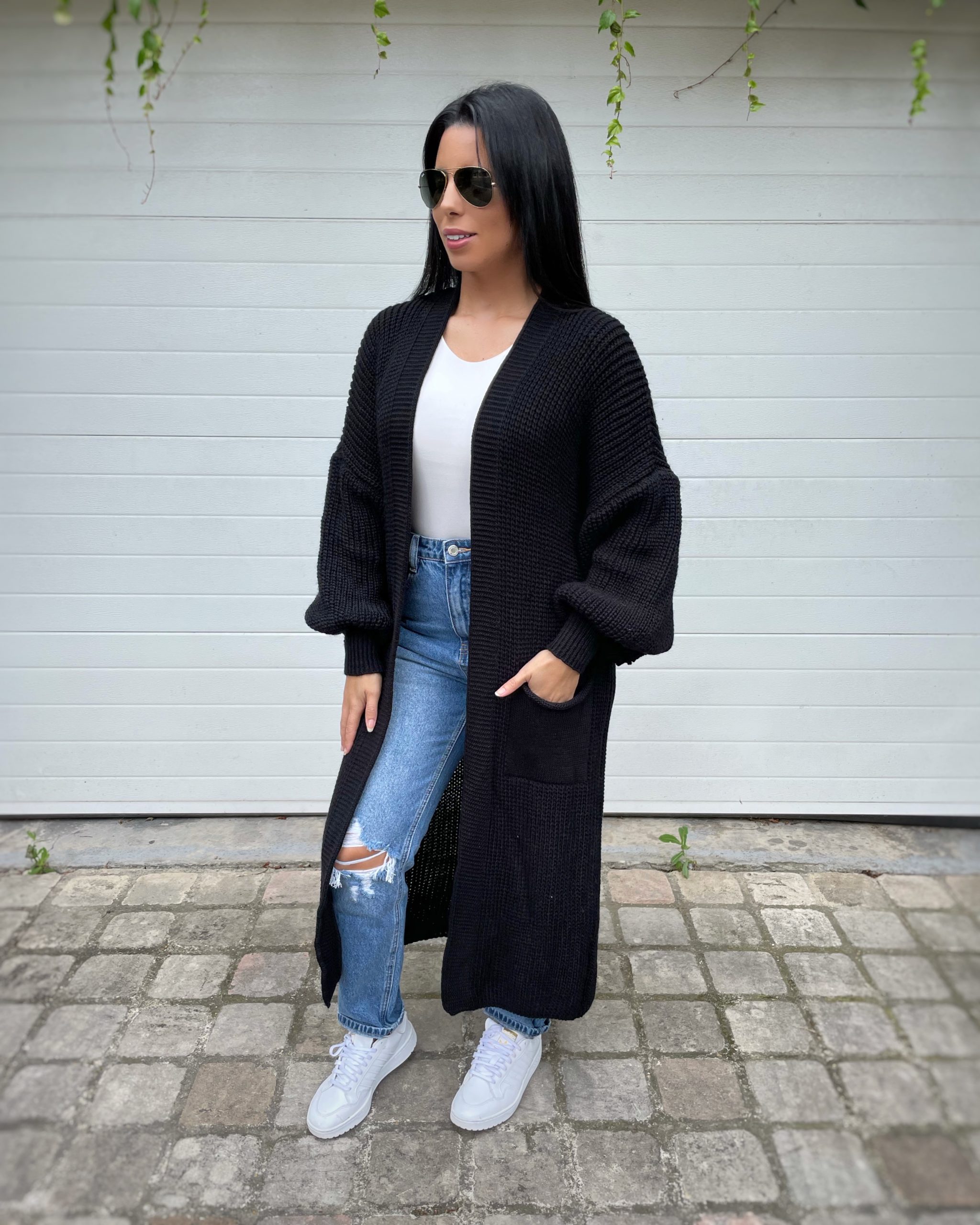 gilet long noir femme